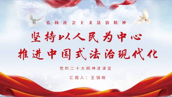 会上,党员教师张曦和王镇晓两位同志分别做了分享。首先,张曦老师以“小家与大家”为主题,从个人成长经历切入,围绕家国联系和共产党员的初心与使命,生动诠释了国家的经济腾飞与十八大以来经济发展给每一个家庭和人民带来的巨大变化和进步;其次,王镇晓老师以“坚持以人民为中心,推进中国式法治现代化”为主题,对党的二十大报告中有关依法治国的内容做了详细解读,并以亲身经历为案例,肯定了党和国家能够将以人民为中心贯彻到法治运行全过程和各方面落到实处。