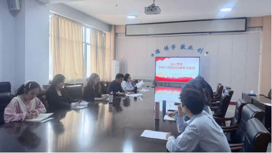 4月15日,beats365中文官网教师党支部在A01-503会议室召开全体会,认真学习贯彻习近平总书记关于深入贯彻中央八项规定精神学习教育的重要讲话和重要指示精神。会议由教师党支部书记刘晔主持,教师党支部全体党员参加。