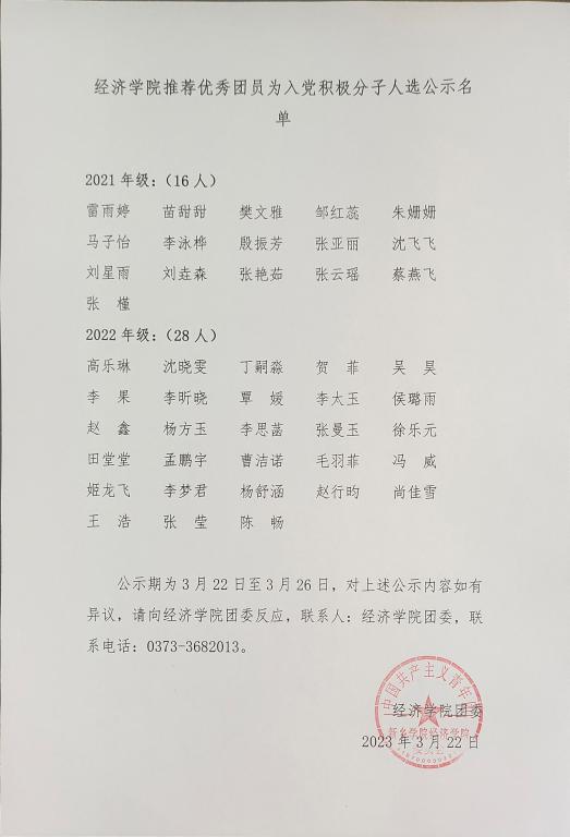beats365中文官网推荐优秀团员为入党积极分子人选公示名单