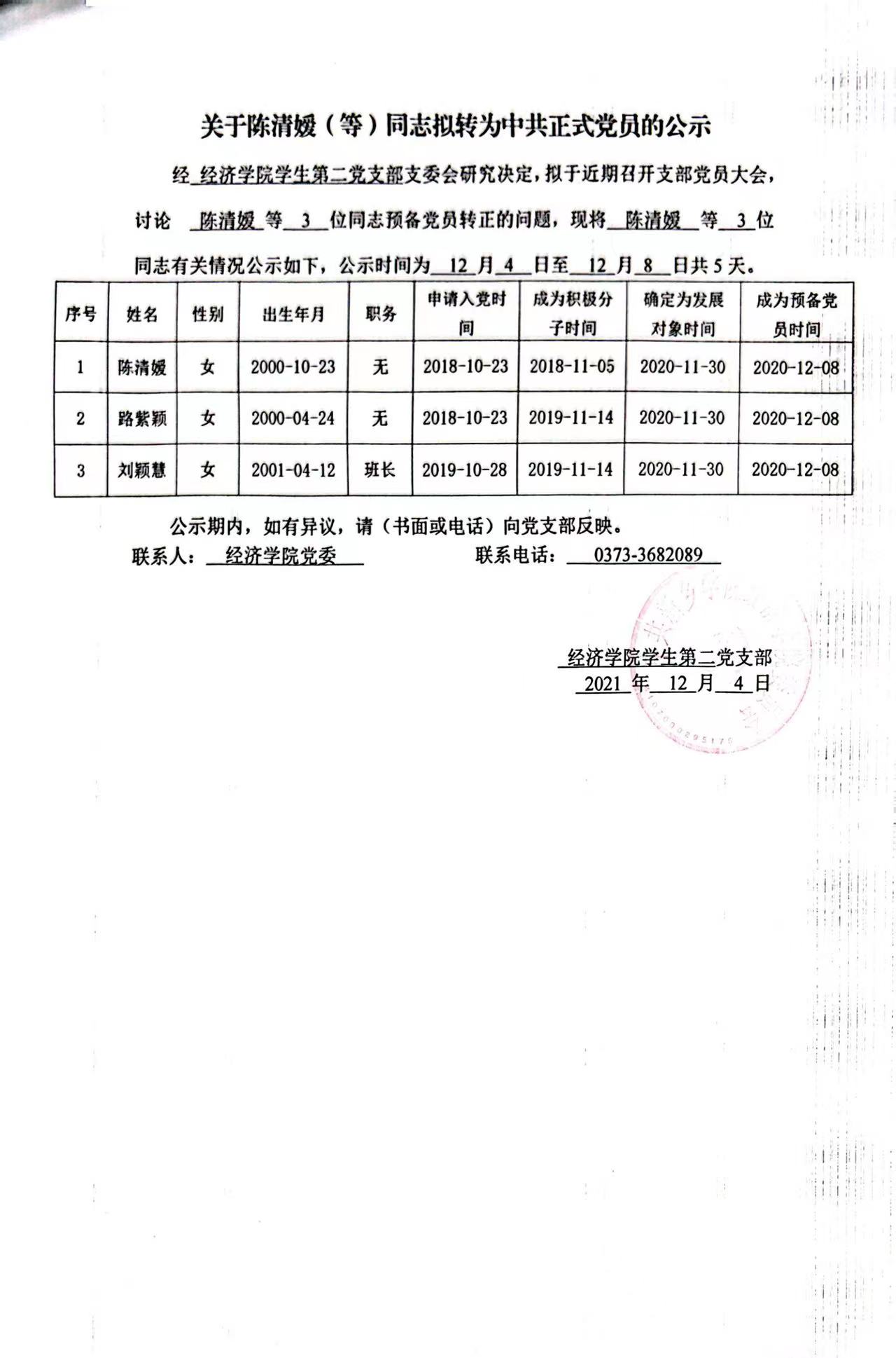 关于陈清嫒(等)同志拟转为中共正式党员的公示