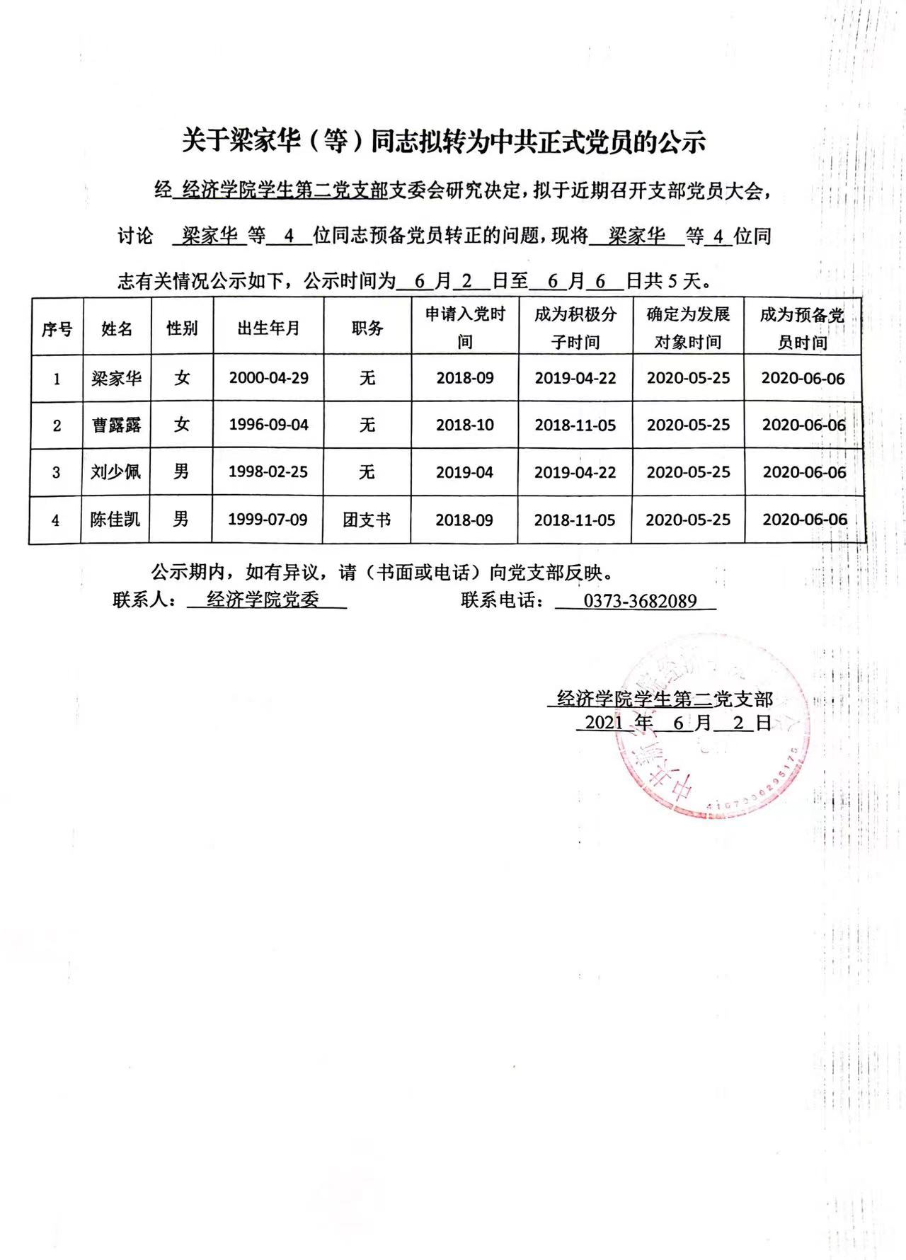 关于梁家华(等)同志拟转为中共正式党员的公示