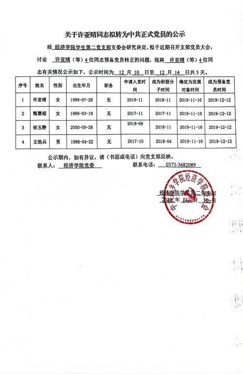 关于徐亚晴(等)同志拟转为中共正式党员的公示