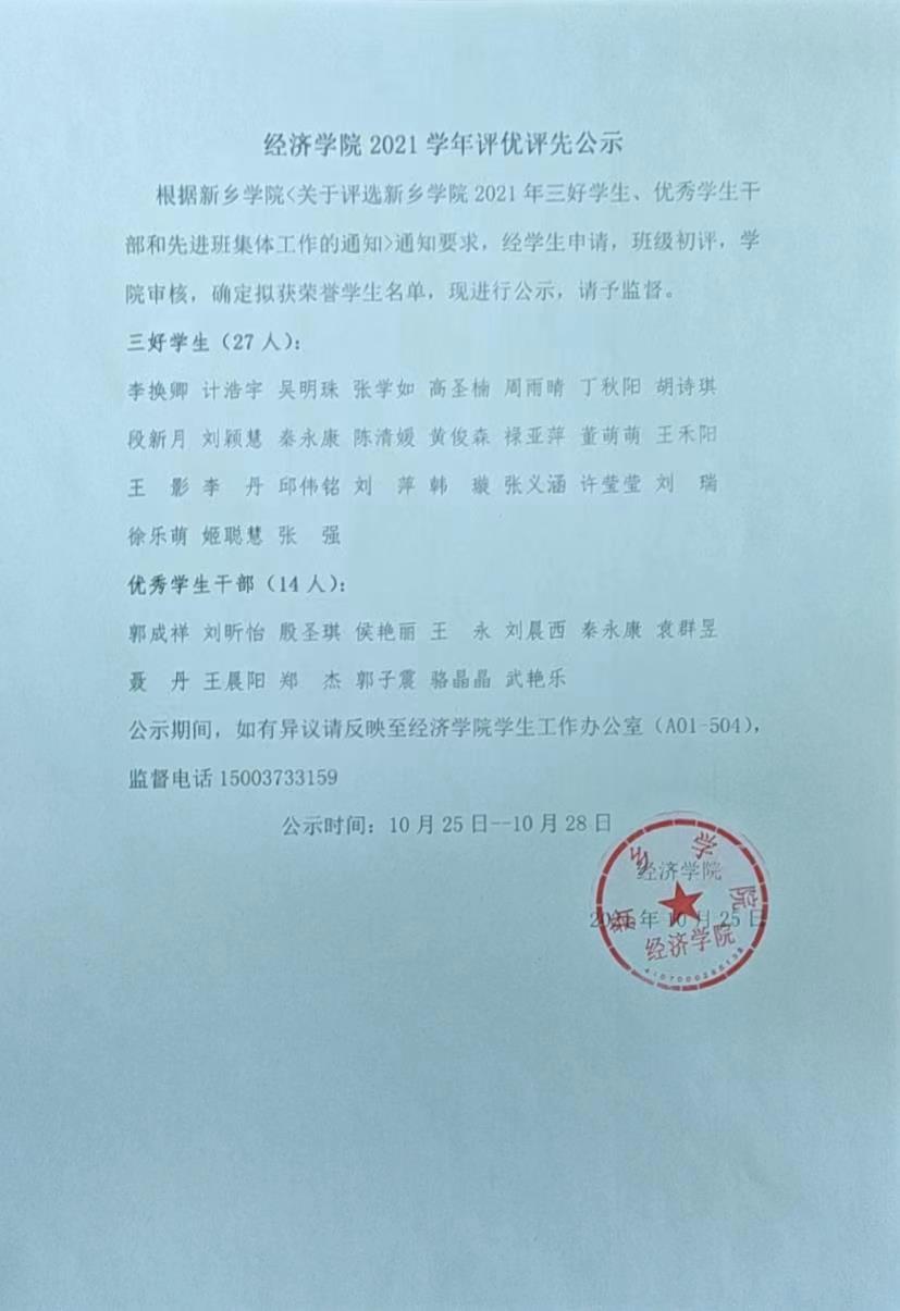 2021学年评优评先公示