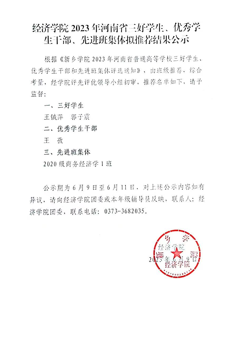 2023年河南省三好员工、优秀员工干部、先进班集体拟推荐结果公示