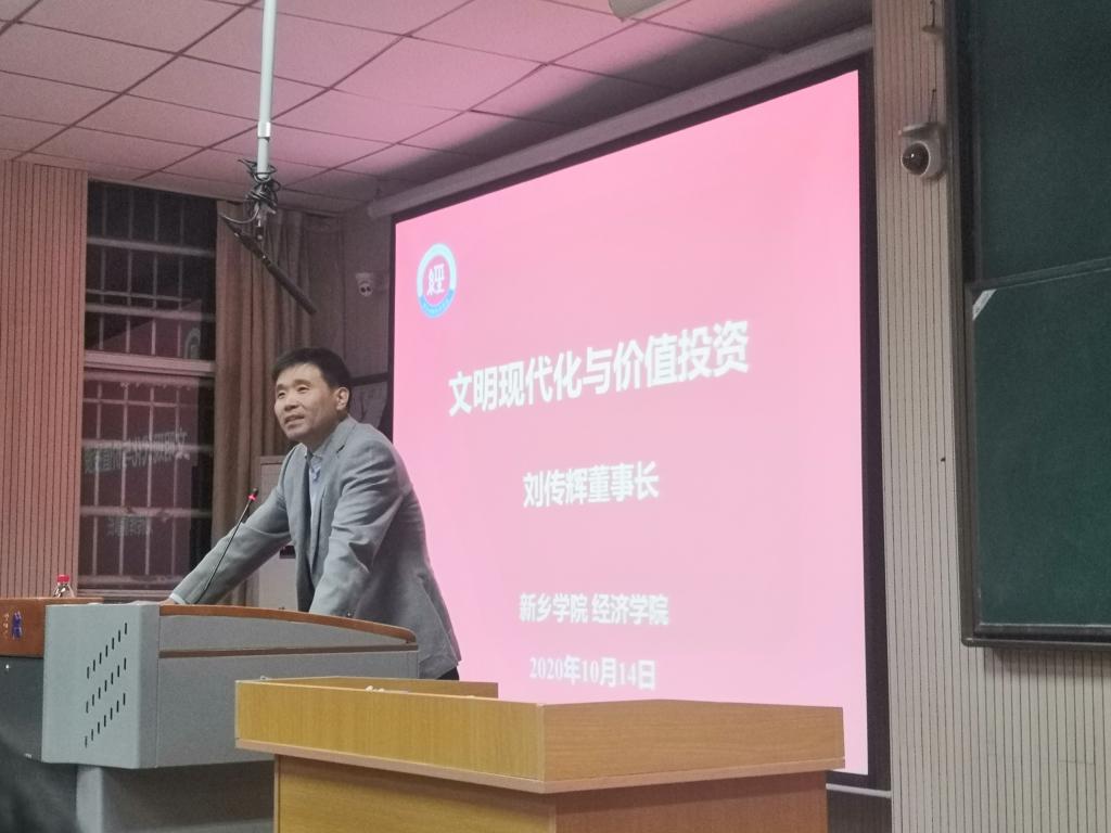所请专家为新乡市格拉姆房地产开发有限公司刘传辉董事长,其作为企业专家,长期从事商务经济领域的工作,擅长商务活动的运营、管理以及策划。这次讲座的主题是文明现代化与价值投资,刘传辉董事长以自己公司的商务案例作为切入点,从商业文明和价值投资角度剖析当代中国商务经济的成长与壮大,并在此基础上和大家分享了自己的商务经历。