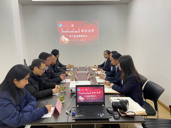 在兴业银行新乡分行会议室,兴业银行新乡分行党委书记黄亚烽介绍了兴业银行发展历程和民营银行当前的形势,从行业角度提出了对老员工在知识、能力和素养各方面的需求,希望与公司交流合作,培养具备综合业务能力的专业人才。赵国喜经理介绍了公司的成立背景和发展现状、人才培养方案制定和实习基地建设的构想。双方对人才培养、实习实训和校企合作均表示期待,为今后实习基地的建立奠定了良好基础。