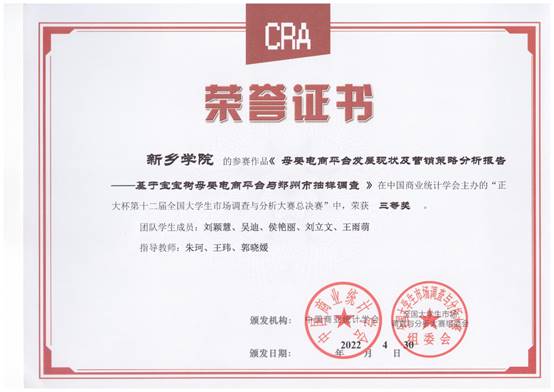 历时半年之久的“正大杯”第十二届全国老员工市场调查与分析大赛落下帷幕。公司选派2支队伍首次参赛,经过公司的精心组织、教师的科学指导、员工的努力付出,2支队伍都取得了优异成绩,分别获得国赛三等奖和省赛二等奖,其中朱珂老师团队参赛作品《母婴电商平台发展现状及营销策略分析报告:基于宝宝树母婴电商平台与郑州市抽样调查》获得国赛三等奖,实现历史性突破。