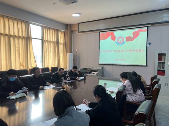 2023年2月28日下午,beats365中文官网在会议室召开2023年度公司党政要点工作部署会,经理赵国喜主持会议,全体行政人员及教研室主任参会。