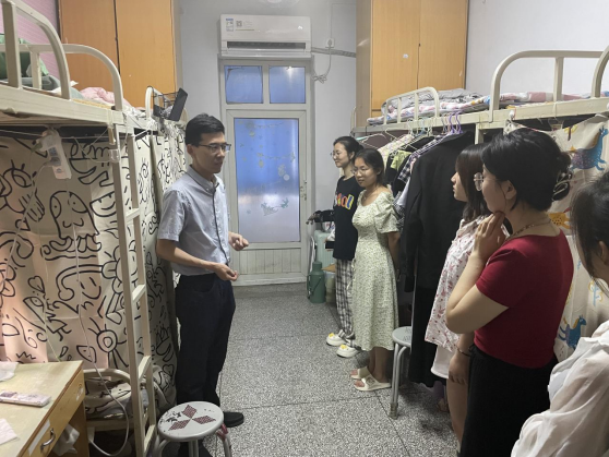 陈卓结合主题教育总要求和根本任务,与员工展开座谈,又带领辅导员深入员工宿舍实地查看住宿情况。在了解掌握员工面临的实际问题后,陈卓表示会根据问题进行分类,公司和老师能帮助解决的会想尽办法解决,需要反馈的会积极向相关部门进行沟通,并给予答复。最后,他勉励考研的同学们珍惜时间,刻苦学习,积极备战,努力实现心中梦想。