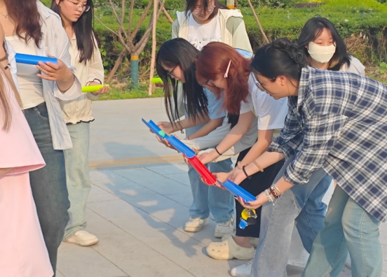 活动中,“筷子夹球”项目考验了大家的耐心与手眼协调能力,现场笑声不断,有的同学因紧张手抖导致球频频掉落,引得队友们加油鼓劲;“车轮滚滚”项目中,大家积极调整策略,默契配合,一步步冲向终点,同伴在侧高声助威;最后的“珠行万里”更是将气氛推向高潮,队员们既要保证速度,又要防止球中途掉落,紧张刺激的比拼展现了团队的智慧与凝聚力。