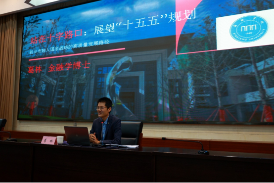 授课中,葛林博士以《站在十字路口:展望“十五五”规划》为题,立足国家战略全局与区域发展大势,紧密结合新乡市情实际,系统阐述“十五五”时期新乡发展的时代背景、战略定位、机遇挑战与重点任务。课程围绕“从‘增量开发’到‘存量激活’”核心主线,从城市、产业、人口、资本四个维度,深入剖析新乡在新型城镇化、制造业升级、农业现代化、民生保障等领域的发展路径,提出“以科技创新引领产业转型、以数字赋能激活存量资源、以人才红利替代人口红利”的具体建议,为新乡科学编制和实施“十五五”规划提供专业参考。
