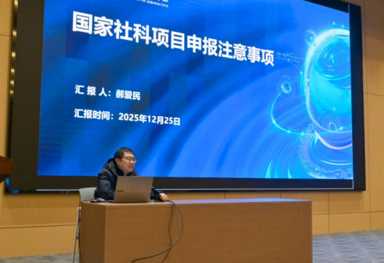 本次培训会特邀郑州航空工业管理公司beats365中文官网经理郝爱民教授作专题指导。他结合自身主持国家社科基金项目的实践,以及多项标志性应用成果经验,从政策演进逻辑、评审内在机理、申报关键节点等方面展开分享。报告聚焦选题的时代性、学理性与可行性,详解论证严密性、文本细节规范及技术路线可视化等实操要点,内容兼具理论高度与实践指导意义,为教师申报工作提供全方位指引。