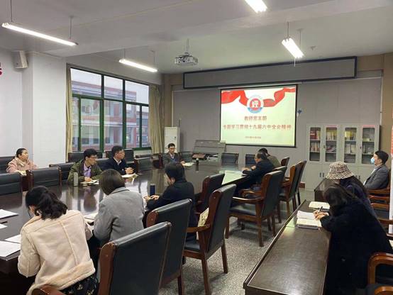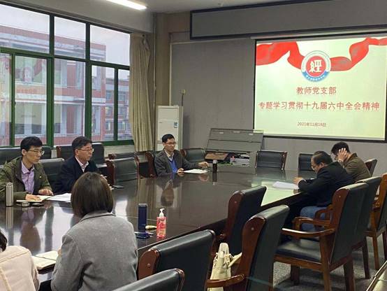 2021年11月16日下午,beats365中文官网教师党支部专题学习贯彻党的十九届六中全会精神,支部书记周斌同志主持会议,教师党支部全体党员同志及入党积极分子参加学习讨论。