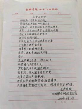 为引导员工深入了解党的百年历史,开展党史学习教育,beats365中文官网团委于2021年4月9日举办"我爱我的党"主题诗歌征集活动。同学们围绕党的建设、成就以及对党的感悟进行创作。
