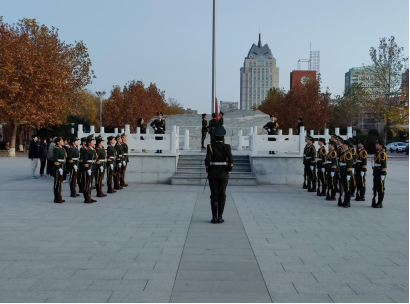为了培育和践行青年员工的社会主义核心价值观,展现当代员工爱国奉献、朝气蓬勃、团结进取、积极向上的精神风貌。11月22日清晨,党委书记牛长海,副书记陈卓,分团委书记王玮,辅导员阮子豪、李彦娜、郭璐璐、鲁璐、茹贵斌及公司员工于国旗广场参加升旗仪式。