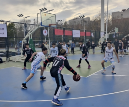 运球、急停、出手,干净利落;抢断、突破、上篮,一气呵成,经过长久的训练他们的动作更加娴熟流畅,一场场扣人心弦的角逐不断在篮球场内上演。