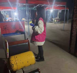 我们的任务是协助开展第一轮核酸检测,志愿者主要负责登记处的身份信息采集。首先我们集中学习了如何操作系统对村民的信息进行采集,十人混检的开箱、开管、封管、封箱操作由我们志愿者进行。穿上防护服,开始核酸检测了,防护服一穿,一种责任使命感油然而生。第一天核酸检测因为准备的匆忙,加上没有经验,进度缓慢,还有一些小插曲。从中午一直持续到凌晨,中途轮班休息,匆忙吃了晚饭,然后继续工作,第一轮的核酸检测在星月伴随下结束。第二轮核酸检测开始,加入进来的志愿者明显增多,进度也快了许多,检测现场也更加有秩序,比前一天快了不少。