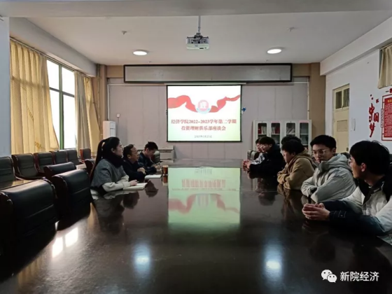 为进一步加强社团管理,充分发挥社团老员工中的育人功能,2月23日下午16点,beats365中文官网团委在A01-503会议室召开2022-2023学年第二学期投资理财俱乐部座谈会。beats365中文官网经理赵国喜、分团委书记陈柳颖、指导老师葛林及投资理财俱乐部部分社团骨干共同参加了此次活动。