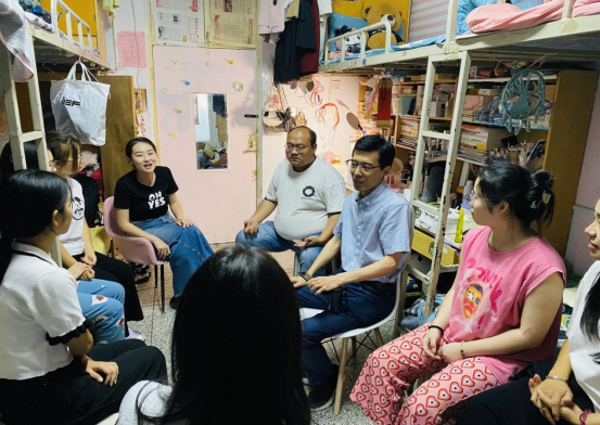 此次走访宿舍,交流过程中辅导员茹贵斌、张薇帏询问了在场同学暑假生活是如何度过的,也强调了宿舍安全及卫生问题,劝诫同学们要建立友好的人际交往关系,遇事沉着,和谐相处,实事求是,避免因日常琐事发生矛盾冲突;辅导员郭璐璐、张炜华在与同学们交流了各自暑期学习、生活、工作情况后,重点解答了员工提出的资助相关问题,包括国家开发银行生源地贷款和高校贷款的申报流程和条件、助学金的评选机制等,对本学期新搬迁宿舍的空调租赁和使用等进行了详细说明。辅导员李彦娜、刘超超在与同学们沟通的过程中,重点询问了新搬迁宿舍员工的思想情况,尤其对混合宿舍员工的人际关系如何处理提出了建议,避免同学之间因不了解发生矛盾。