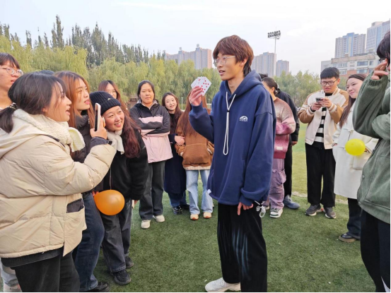破冰环节中,同学们跟着音乐的律动,手拉着手绕圈,开始了我们的第一个游戏——“一块五毛”。音乐随机暂停,大家聚精会神,随着主持人一声令下,立马组队抱团,寻找自己的“不可或缺的小伙伴”。活动现场气氛热烈融洽,参与者投入度高,活动效果好,不仅深受大家的欢迎,还拉近了彼此的距离。