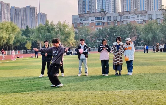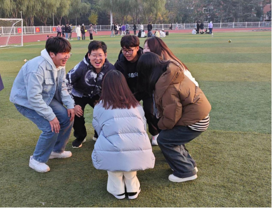 “萝卜蹲”是对团队合作以及团队战术交流的考验游戏。部门成员为一组,事先商量好小组的“目标”,当接收到其他组发出的指令口号时,做出下蹲动作,并指定下一个组。同学们个个斗志昂扬,团队之间配合默契,部门之间你追我赶,游戏让“社恐”分子也都活跃起来,操场上充满欢声笑语,大家都直呼过瘾!