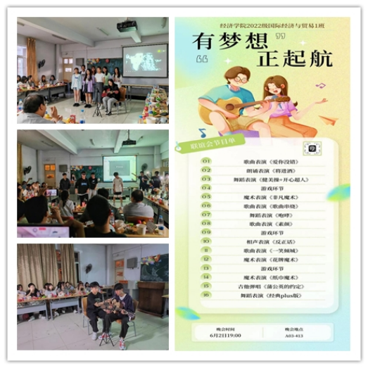 2023年6月2日晚,2022级国际经济与贸易1班开展了以“同心共筑梦,青春正当时”——助力健康成长,营造和谐班风为主题的室内拓展活动,通过活动的开展,增强班级凝聚力和向心力,树立同学们之间的积极沟通、相互信任、团结合作、深化班级班风建设,增进同学们的归属感。此次活动由李昕晓、侯璐雨同学主持。辅导员茹贵斌、各年级代表及22级国贸1班全体员工参加。