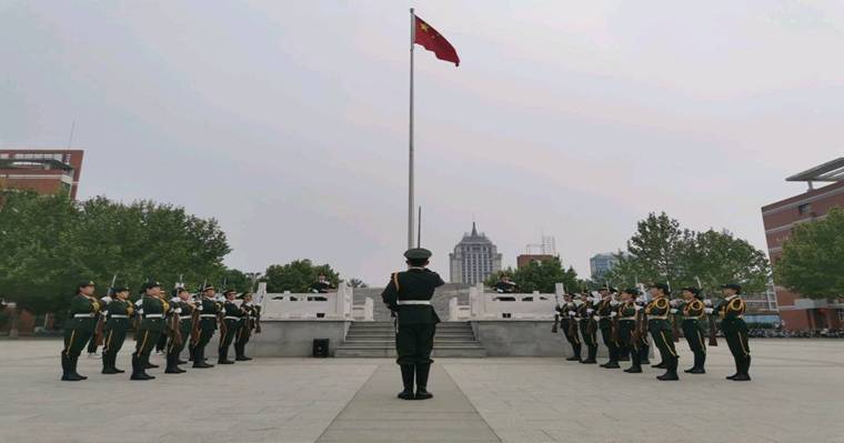 迎着朝阳,英姿飒爽的国旗护卫队队员们护送鲜艳的五星红旗入场,他们着装整齐、步伐矫健。随后,伴随着庄严的《义勇军进行曲》,五星红旗冉冉升起,随风飘扬,在场的每一个人集体行注目礼,深怀对祖国的无限热爱和崇高的敬意。