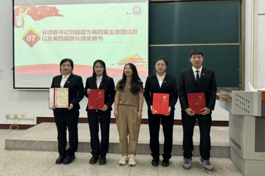 最后,辅导员刘超超为第四届主席团成员及各部部长颁发聘书。