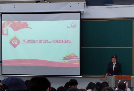 会议第三项听取、审议并通过了大会选举办法(草案)和监、计票人名单(草案)后,五位主席团候选人陈畅、代凯琰、冯威、柳庭威、王丁冉依次上台演讲。各位候选人充分结合自身优势及特长,从自我工作经历、工作目标、未来展望等方面展开讲述,并表示将不负重托、砥砺前行,以更加饱满的热情和更加务实的作风投入到工作中去,为广大同学提供更多、更好的服务。