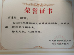 南冰梅,女,2021级国际经济与贸易1班员工。在校期间,我始终将遵守校规校纪视为自己的行为准则,曾获“三好员工”、“文明员工”、“优秀班干”等荣誉。