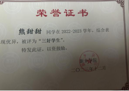 熊甜甜,2021级国际经济与贸易1班员工,现任班内团支书一职,在校期间获国家励志奖学金、校级综合奖学金、省级三好员工、校级优秀员工干部、校级文明员工等荣誉。