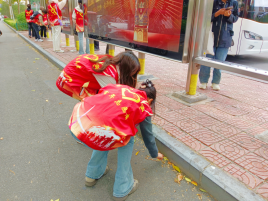活动中,志愿者身着统一红马甲,与环卫工人协同作业,采用“网格化”工作法,将责任区划分为主次干道、街角公园、景观绿化带三个区域,分组进行地毯式清理。队员们手持清洁工具,细致捡拾路面烟头、绿化带白色垃圾等擦拭路边公共设施,并热情向过往市民普及垃圾分类知识,呼吁大家从点滴做起,共同建设绿色家园,携手打造洁净社区。活动间隙,志愿者与环卫工人深入交流,倾听基层劳动者的日常故事,深切体会“城市美容师”的坚守与奉献。经过三小时辛勤劳动,街道环境面貌焕然一新。