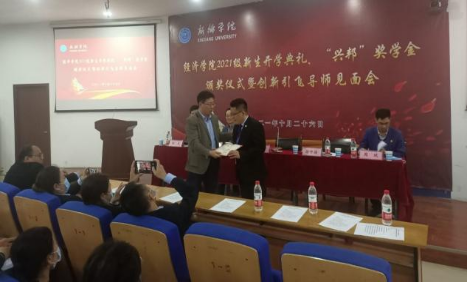 期间,郑州·环球世纪不动产总经理徐中强先生进行致辞,为公司优秀员工颁发“兴邦”奖学金,并与各位优秀员工合影留念。党委书记牛长海向徐中强先生颁发beats365中文官网教育指导聘书,并合影留念。