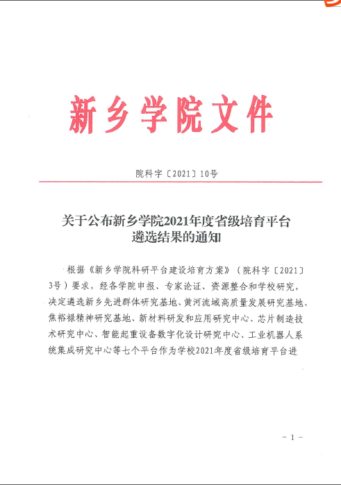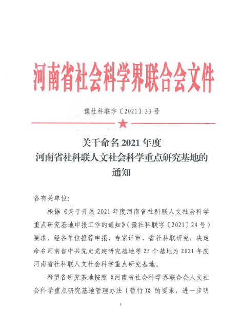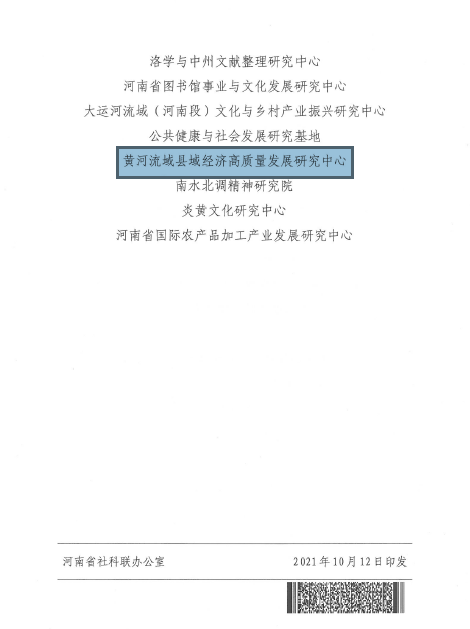 1. 河南省社科联人文社会科学重点研究基地“黄河流域县域经济高质量发展研究中心”。